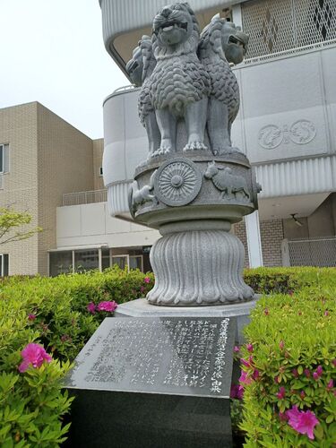 ツツジの庭が綺麗なハルカス3階の広場。 獅子像は壷阪寺から寄贈されたもの。 インドのサルナートで出土されたものを元に製作されました。